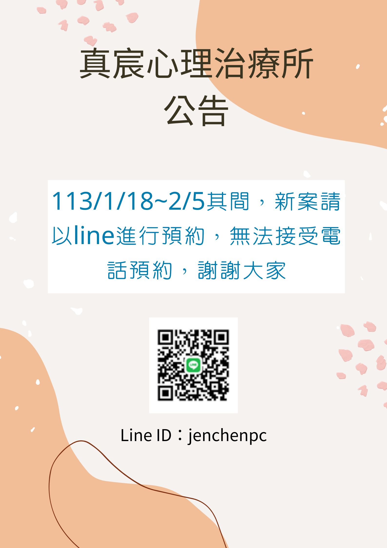 【真宸心理治療所】預約方式調整公告 113/1/18-2/5